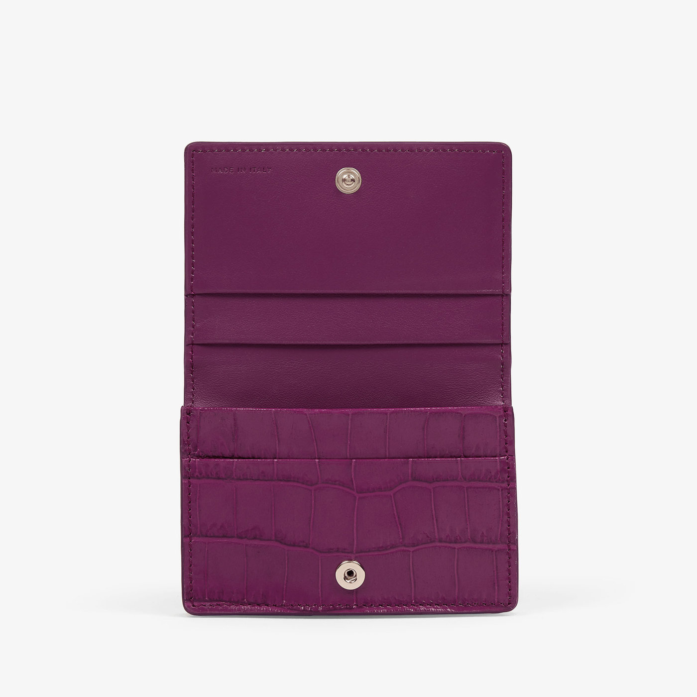 クロコ型押しカーフレザーで作られたマラカードケースは、日常使いできる贅沢な逸品。名刺やクレジットカードなどが収納できます。クロコ型押しカーフレザーで作られたマラカードケースは、日常使いできる贅沢な逸品。名刺やクレジットカードなどが収納できます。リバティロンドンを象徴する美しい鮮やかなパープルでご提案いたします。