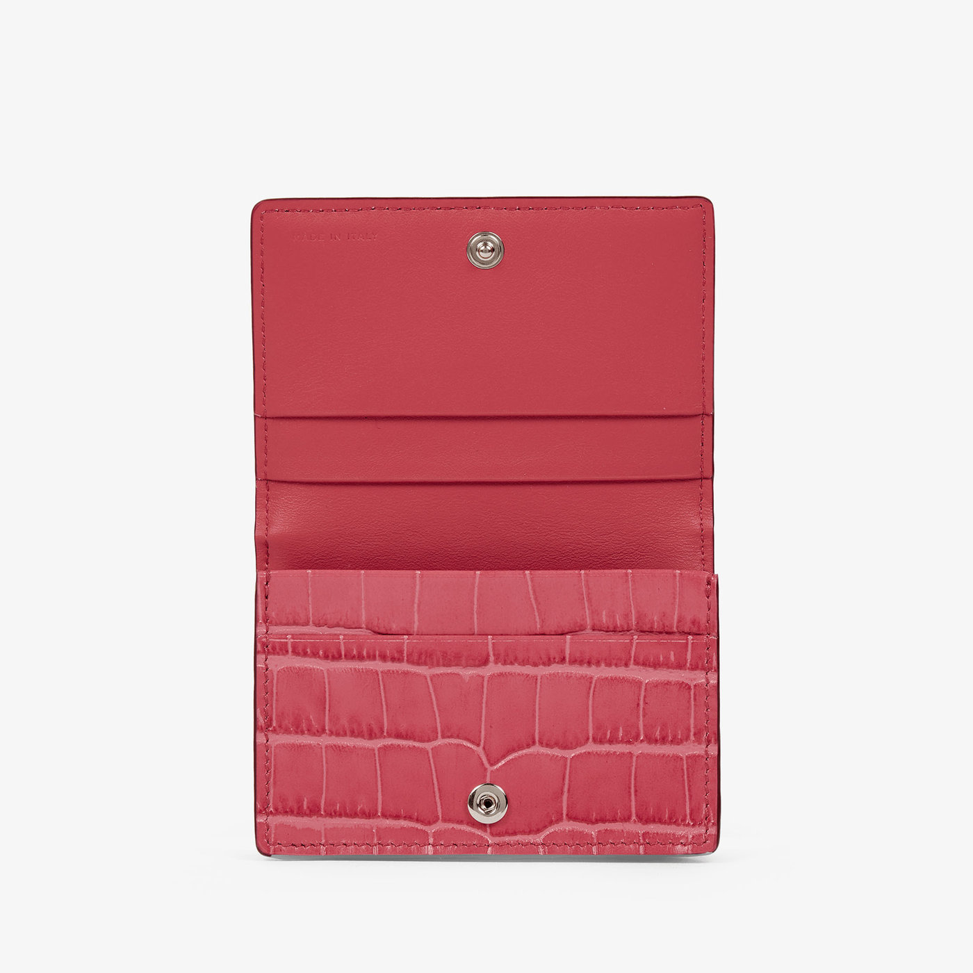 クロコ型押しカーフレザーで作られたマラカードケースは、日常使いできる贅沢な逸品。名刺やクレジットカードなどが収納できます。クロコ型押しカーフレザーで作られたマラカードケースは、日常使いできる贅沢な逸品。名刺やクレジットカードなどが収納できます。