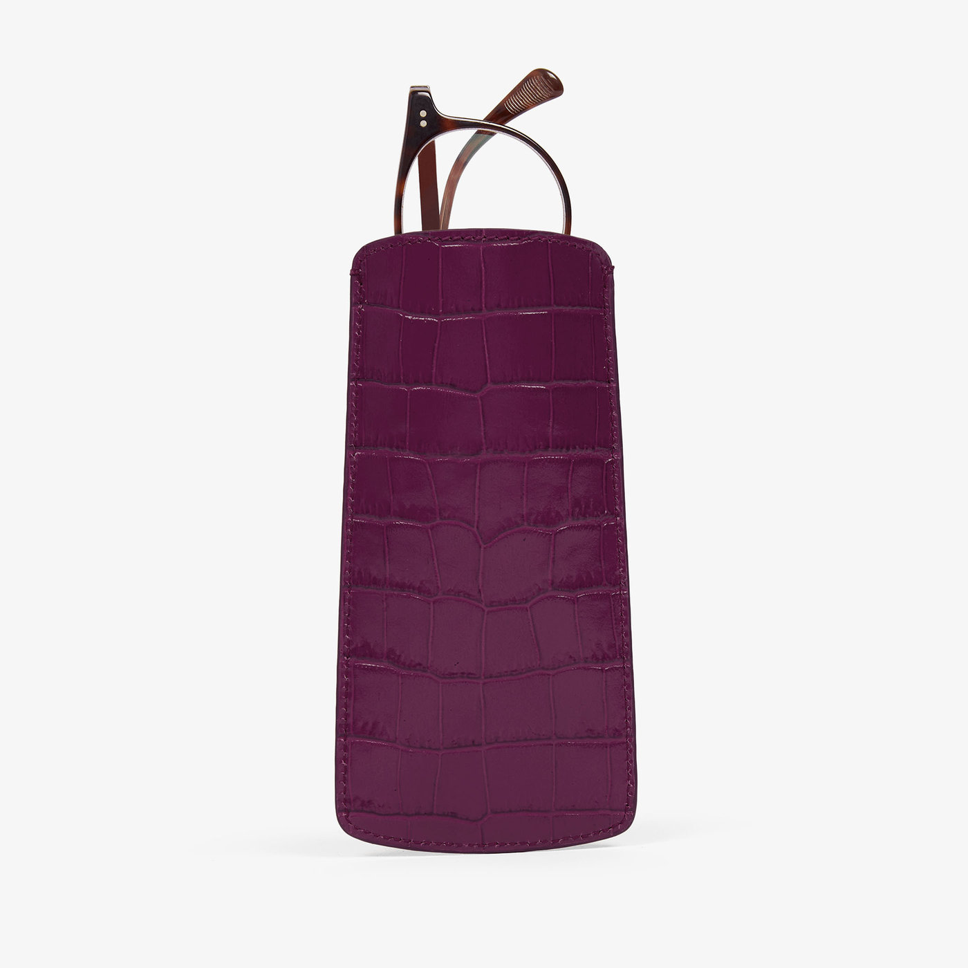 美しいクロコの型押しレザーを使用したこのスタイリッシュなレザーメガネケースはあなたのメガネやサングラスをスマートに収納できます。リバティロンドンを象徴する美しい鮮やかなパープルでご提案いたします。