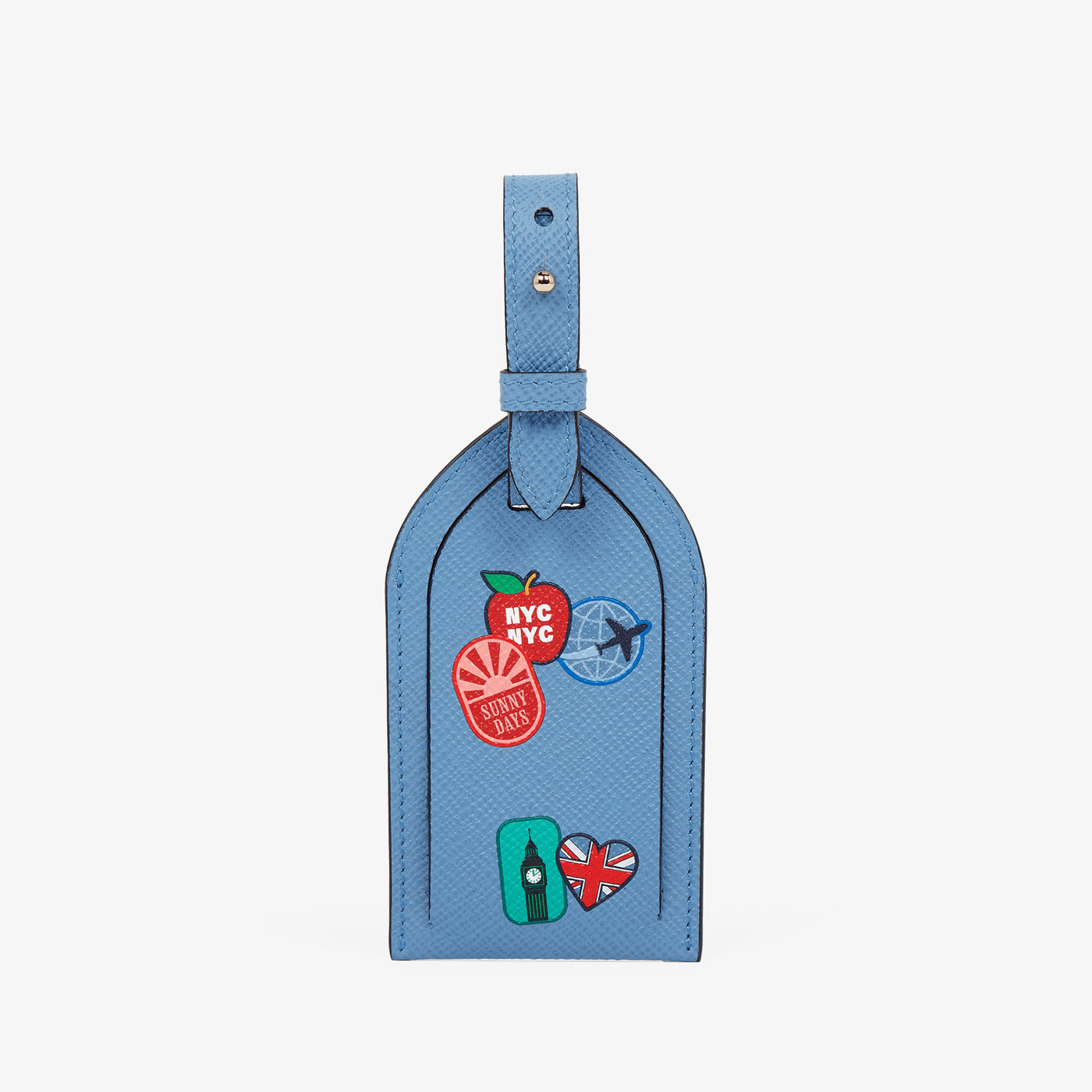 旅と冒険への遊び心あふれるオマージュ、スマイソンのStickerコレクションは日常の必需品に遊び心を添えます。スタイリッシュな旅を演出するパナマ ラゲージタグ。耐久性のあるクロスグレインレザーで仕上げられたタグをトラベルバッグに付ければ、旅の準備も万端です。連絡先を挿入することができる透明ケース付き。