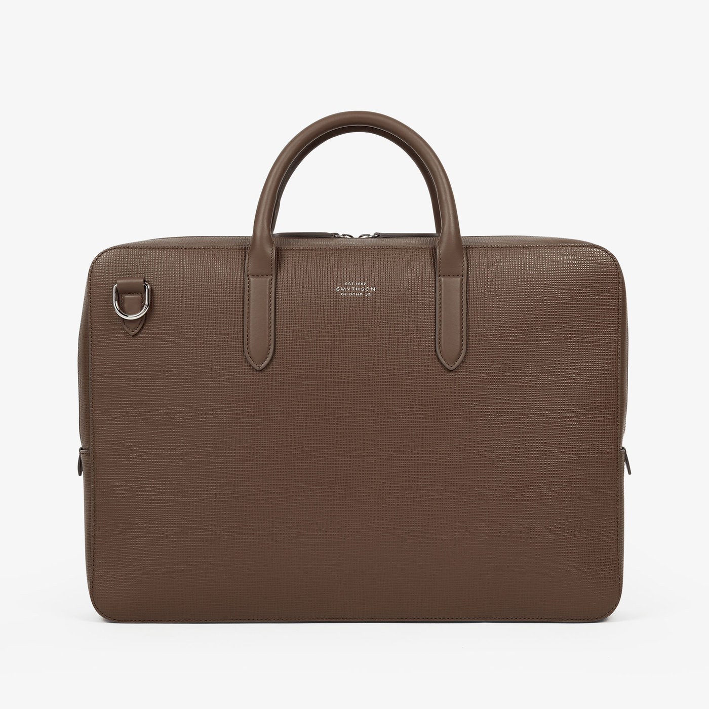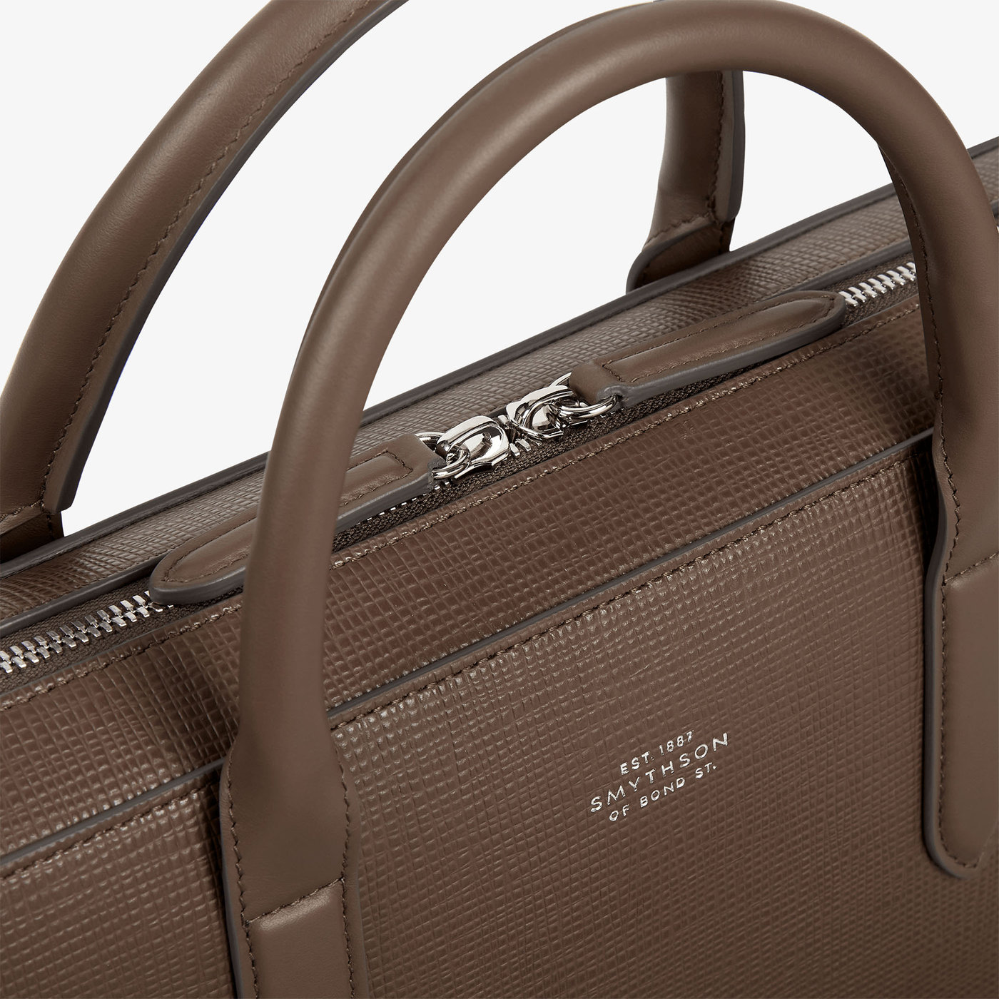 実用性を損なうことなく、洗練されたスタイルのパナマスリムブリーフケースは、アイコニックなクロスグレインカーフレザーを使って作られています。ノートパソコンからペンやノートブックまで、ビジネスシーンの必需品を収納することができます。取り外し可能なショルダーストラップがついていますので、ハンズフリーで通勤する事も可能です。
