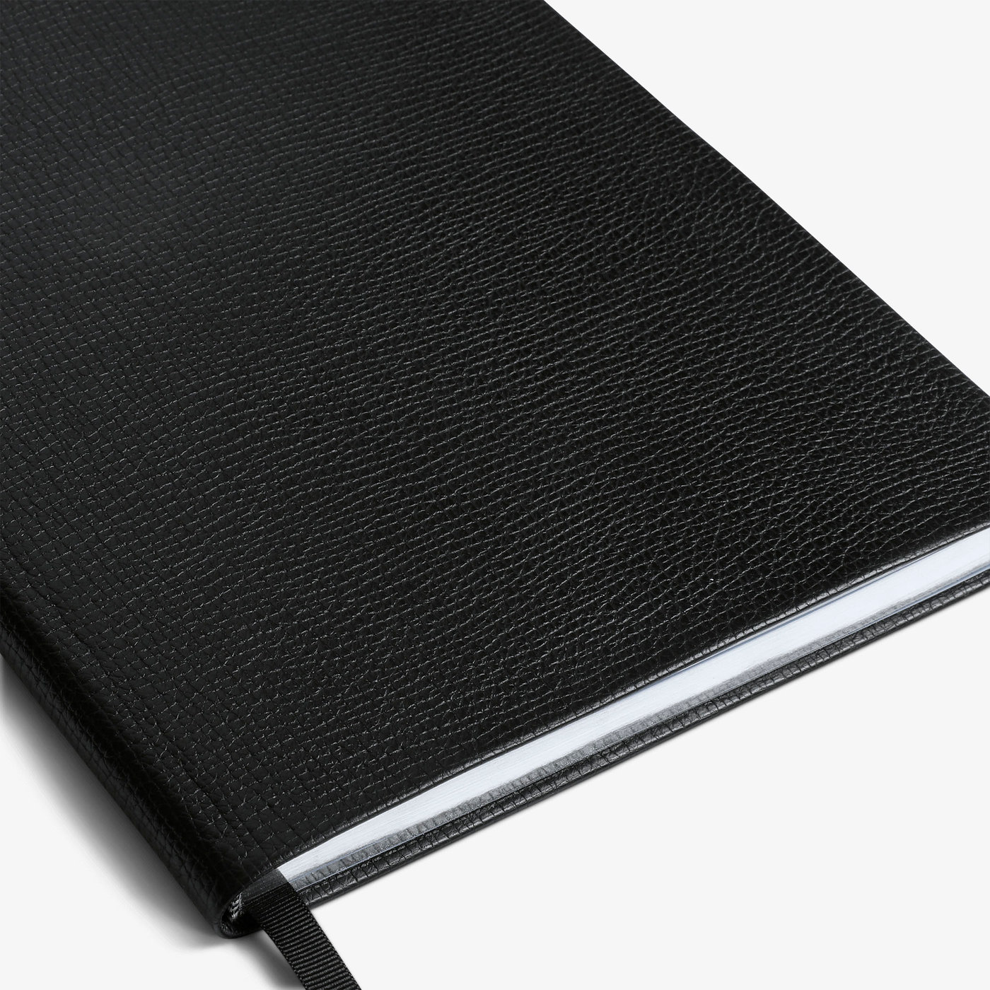 イギリスにてハンドクラフトで仕上げたクラシカルなポートベローサイズのノートブック。最高級のレザーとペールブルーのフェザーウェイト紙を贅沢に使用しています。グログランのブックマークがエレガントな雰囲気を醸し出し、デスクにぴったりな大きめのサイズです。