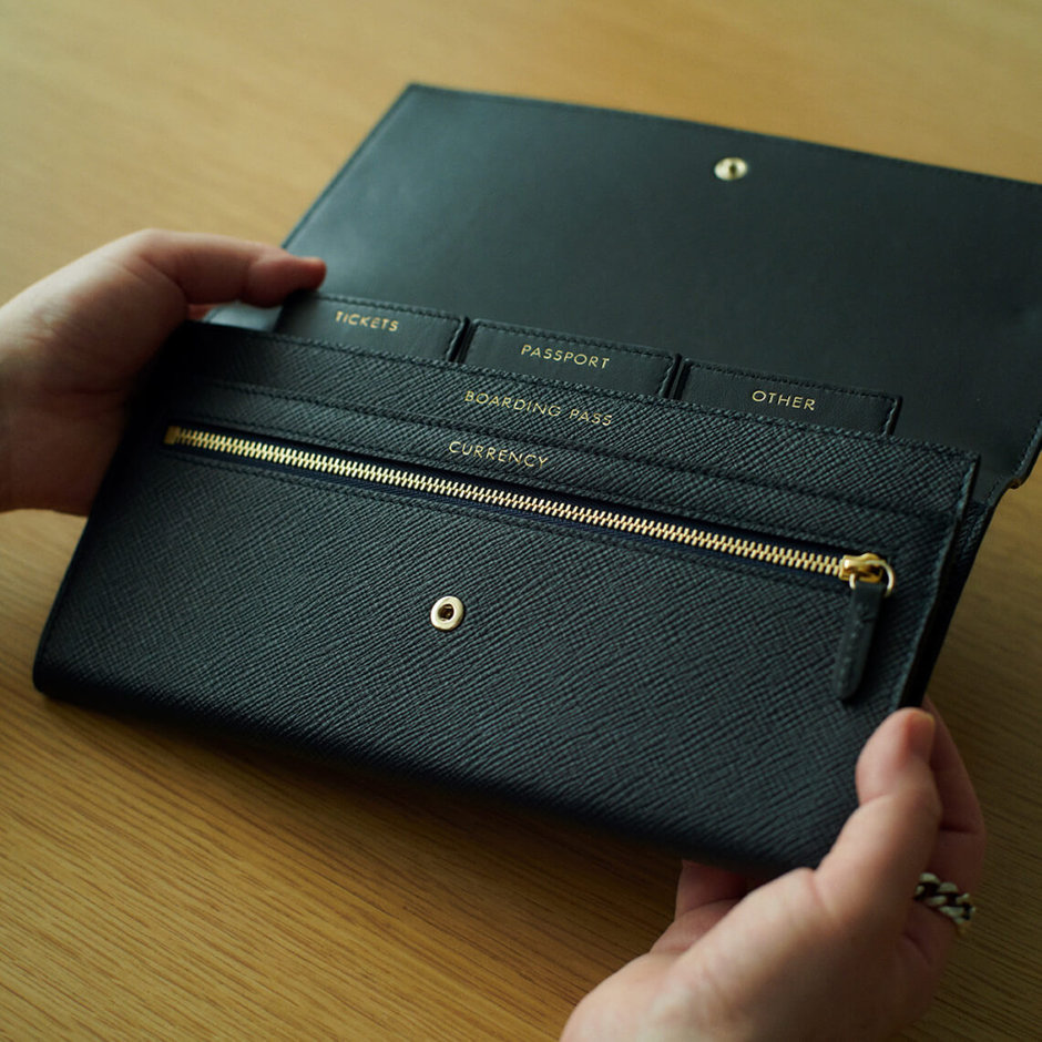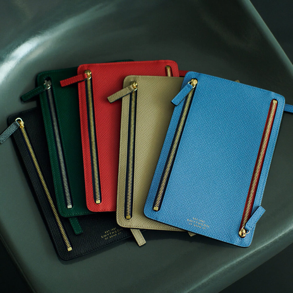 旅の準備をスマートに整えることは、スマイソンの美学のひとつ。空港のカウンターで、あるいは街歩きの途中で。必要なものをストレスフリーに取り出せるのが、マルチジップカレンシーケース。マルチジップケース。