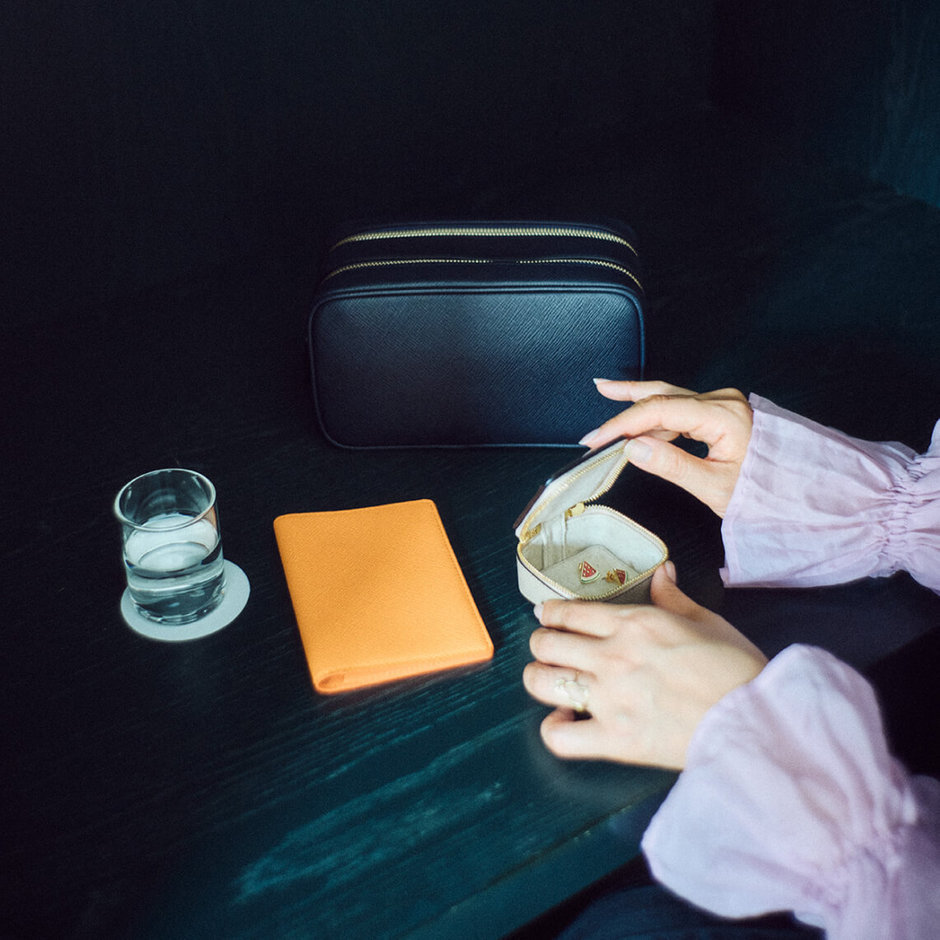 「ブレスレットやリングなどを巾着にしまうと他のアイテムと絡まりやすくなりがちだから、トリンケットケースがあると素敵ですよね。ウォッシュバッグには漢方セットを。ツアーでは体調管理が何より大事なので、いつも大量の漢方で袋がいっぱいになるんです。仕分けができる大きなものを探していたからぴったりです。チケットやパスポートをスロットに収められるトラベルウォレットには、仕事で家を離れるときにいつも娘が書いてくれる手紙や絵をお守り代わりにしまって。大切なものほど、特別なものに入れておきたいなと思います」